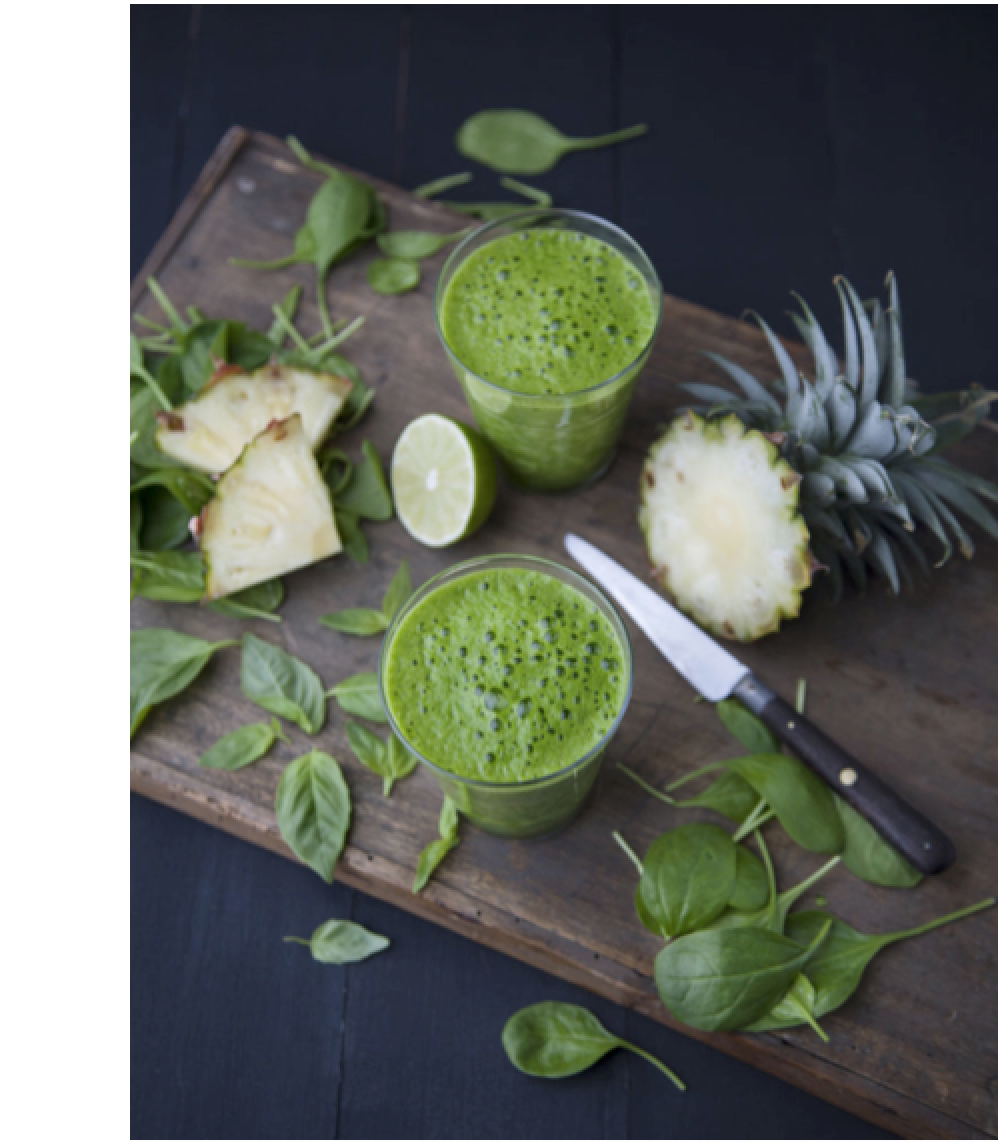 Mixer l’eau avec les épinards. Ajouter l’ananas, le basilic et le jus de citron vert, et mixer jusqu’à obtention d’une texture lisse.
